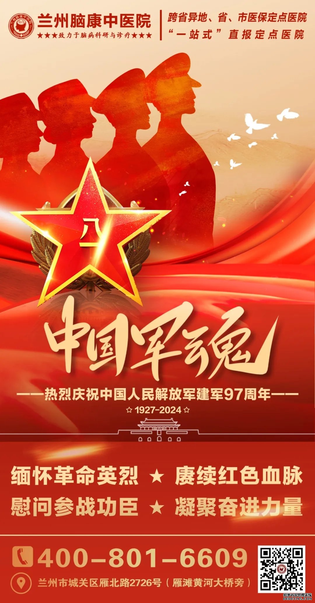 在此,兰州脑康中医院再次向中国人民解放军致以最诚挚的祝福!